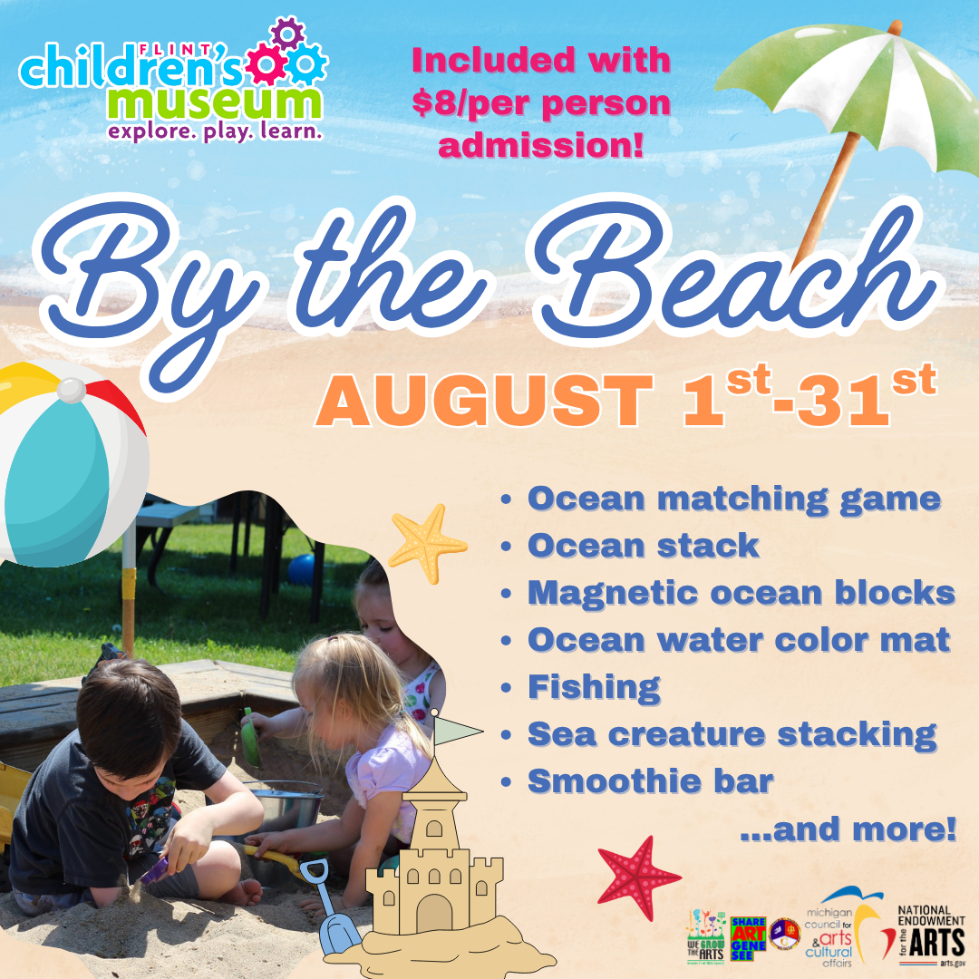 Ready to soak up the rest of summer? Enjoy By the Beach for the entire month of August! Come ready for some fun in the sun. Included with admission of $8/per person!